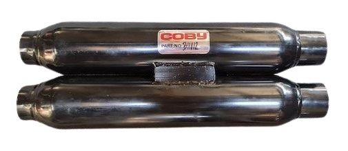 Holden VE V6 twin front muffler replacement 54mm inlet - 57mm outlet Perforated cores Fibre glass packed