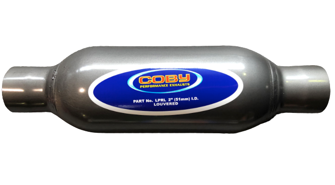2 inch (51mm) inlet and outlet 10 inch (254mm) long barrel 4 inch (101mm) diameter barrel Louvered core Fibre glass packed