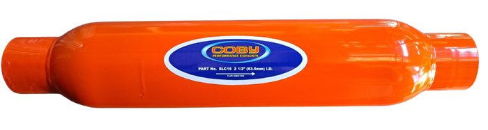 Super Large Coby 2 1/2" (63mm) inlet and outlet 4" diameter 16" long barrel Expansion Chamber in inlet end Perforated core Fibre glass packed