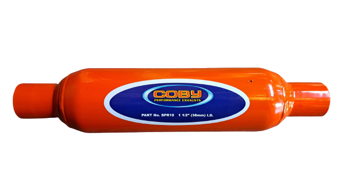 1 1/2 inch (38mm) inlet and outlet 10 inch (254mm) long barrel 3 inch (76mm) diameter barrel Perforated core Fibre glass packed