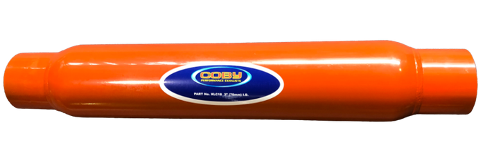Xtra Large Coby 3" (76mm) inlet and outlet 4" diameter 18" long barrel Perforated core Fibre glass packed