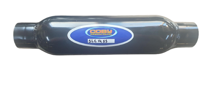 Super Large Coby 2 1/2" (63mm) inlet and outlet 4" diameter 14" long barrel Perforated core Packed with Stainless steel